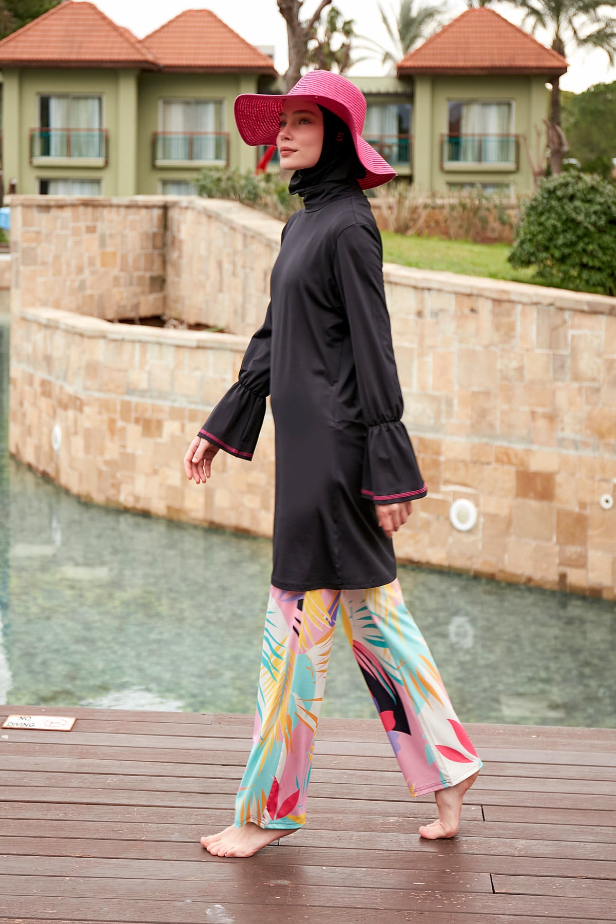 ملابس سباحة محتشمة بوركيني من الليكرا باللون الأسود M2480