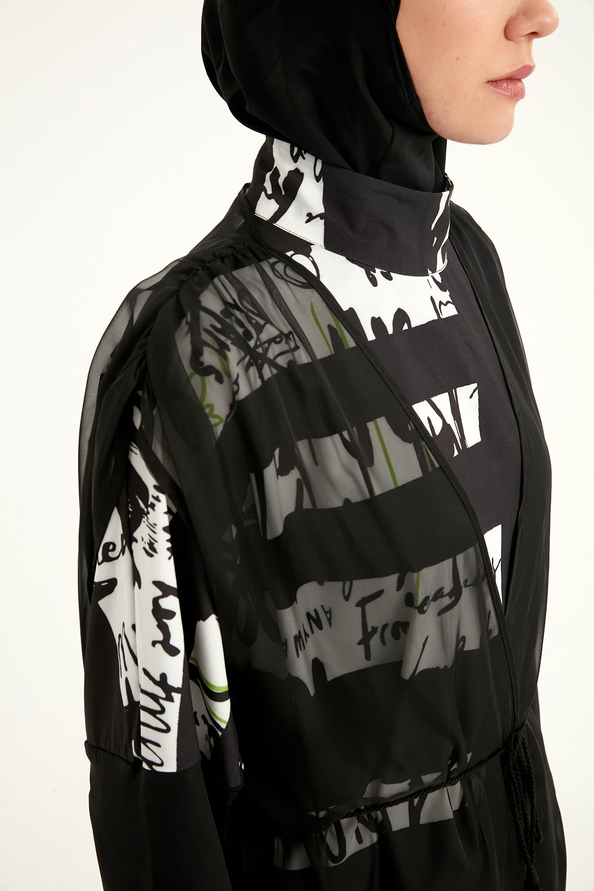 The Marina P2502 offers modern elegance with its clean, sleeveless black design. The fine silky texture allows the fabric to drape gracefully, combining comfort with refined style. Use the adjustable waist tie to gently shape your silhouette or wear it loose for a relaxed look. Its neutral black tone pairs effortlessly with a wide range of inner layers, making this kimono a versatile wardrobe staple.