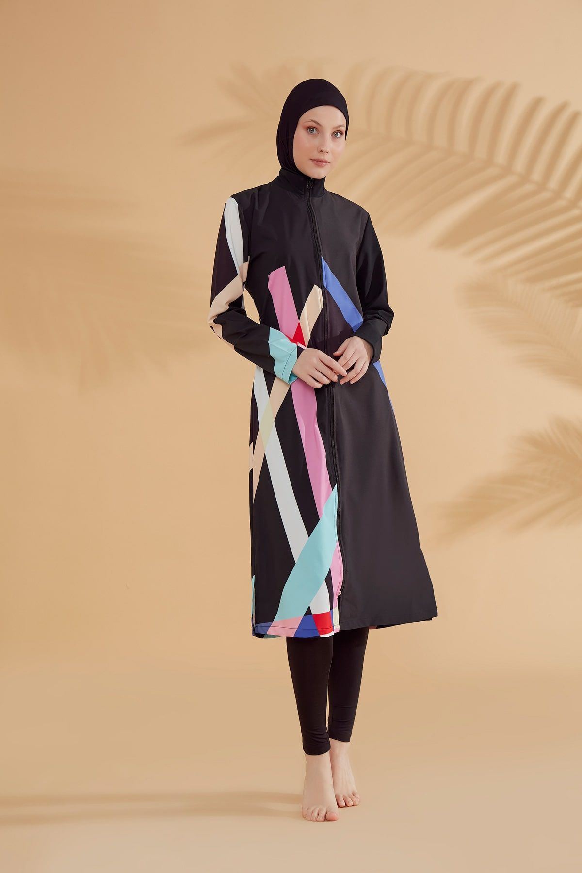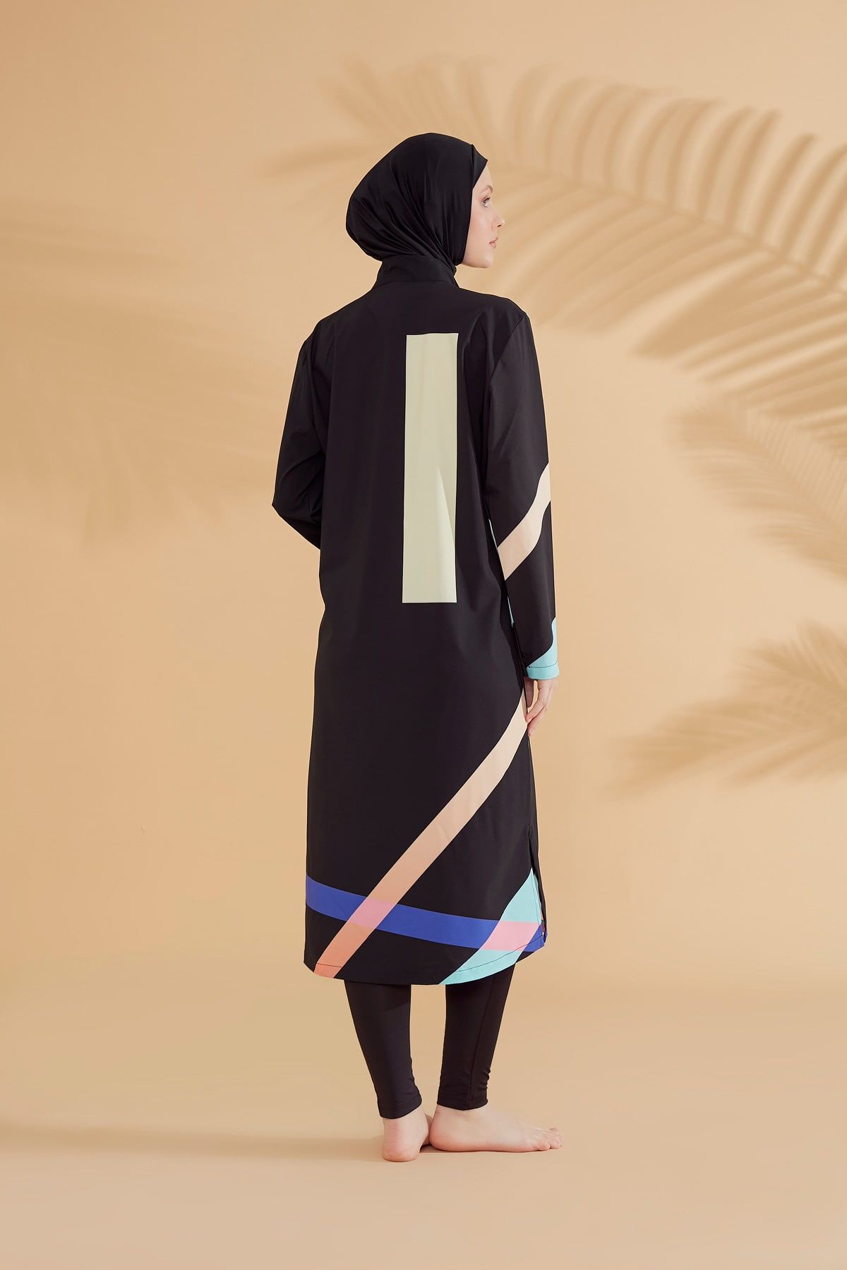 ملابس سباحة محتشمة بوركيني منسوجة باللون الأسود M2310