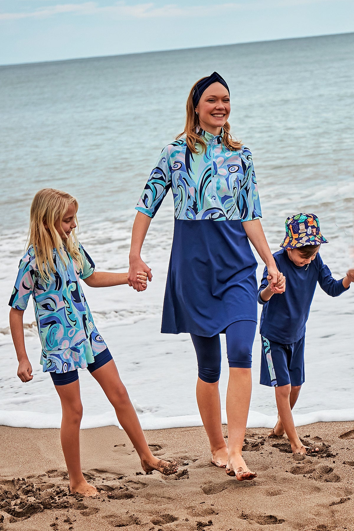 ملابس سباحة منسوجة باللون الأزرق الداكن بتغطية نصفية M2460
